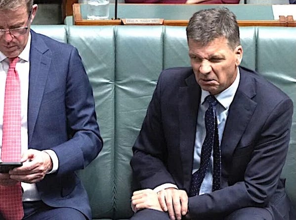 Angus Taylor brings quality plumage to the job that has always been his. Despite his wooden, cliché-infused style, the bouffant will concentrate the minds of citizens as they grapple with the question: Can a man who was part of the rot stop the rot?
